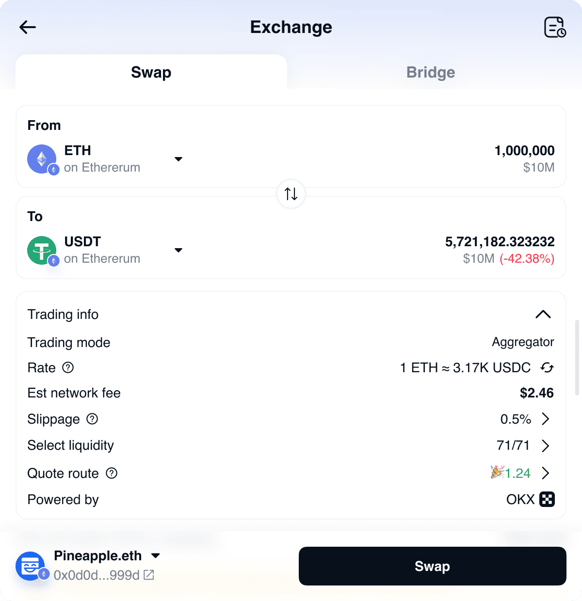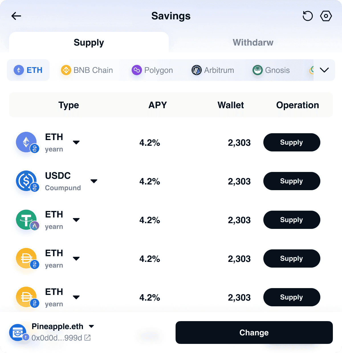 An unhosted, open-source multi-chain wallet supporting 15+ major EVM chains, providing a comprehensive suite of on-chain encrypted services. It includes a one-stop display for all assets across chains, fast, low-slippage swap services, and future integration of various dApp gateways.