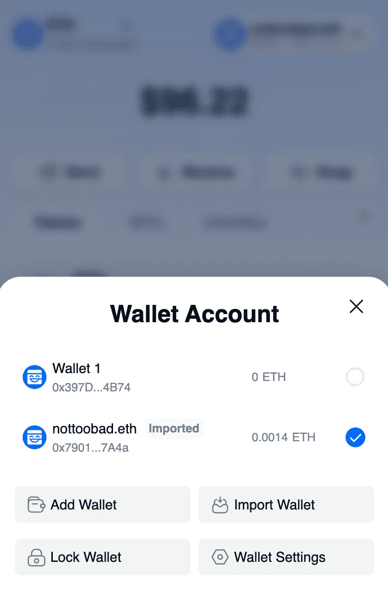 When you have multiple wallets, you can switch between them by selecting different wallets.