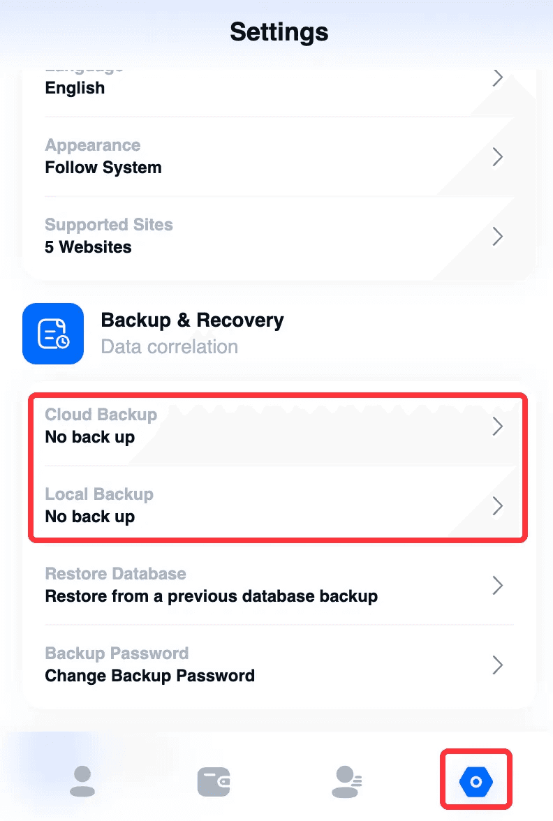 Cloud Backup: Backup via email or phone number. Enter the verification code to complete.