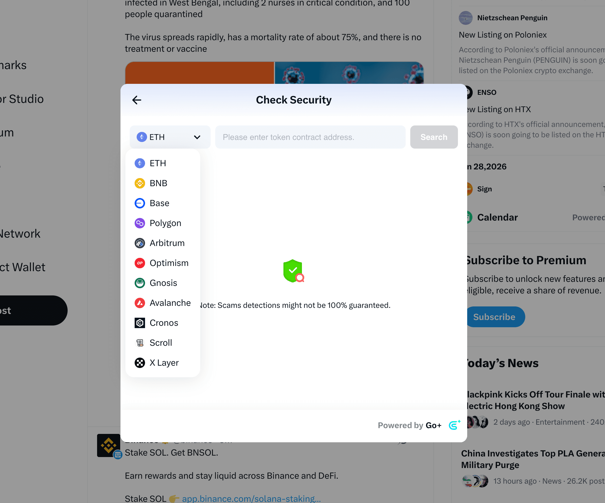 💡 Here you can check the security of Token, NFT, and Address. Powered by Go+.