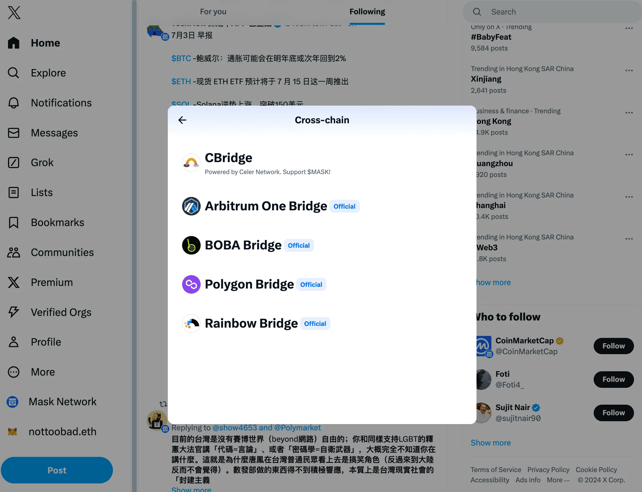 We have integrated multiple cross-chain tools, and you can click to jump to the corresponding website directly.