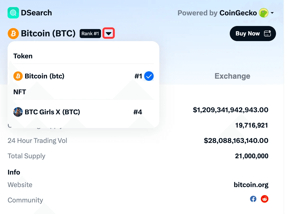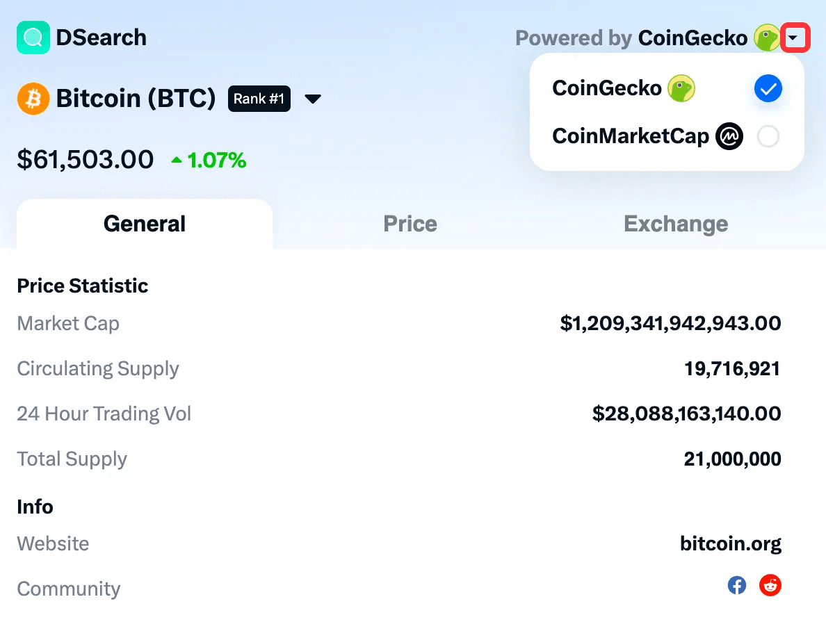 💡 You can click on the top right corner to switch token data sources (CoinGecko, CoinMarketCap)