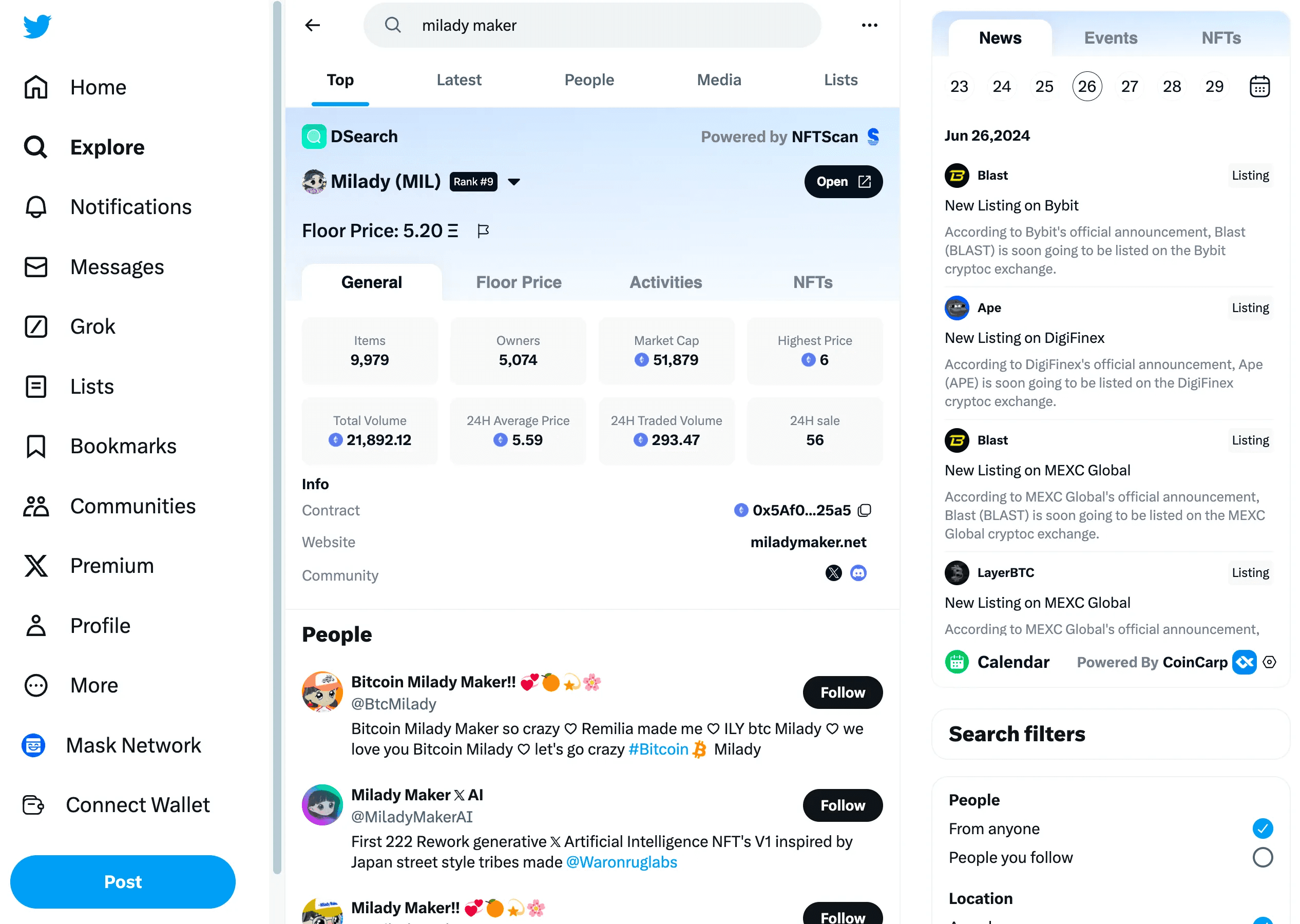 The Mask extension has integrated CoinGecko, CoinMarketCap, and NFTScan. After installing the Mask extension, users can check token info in real time.
