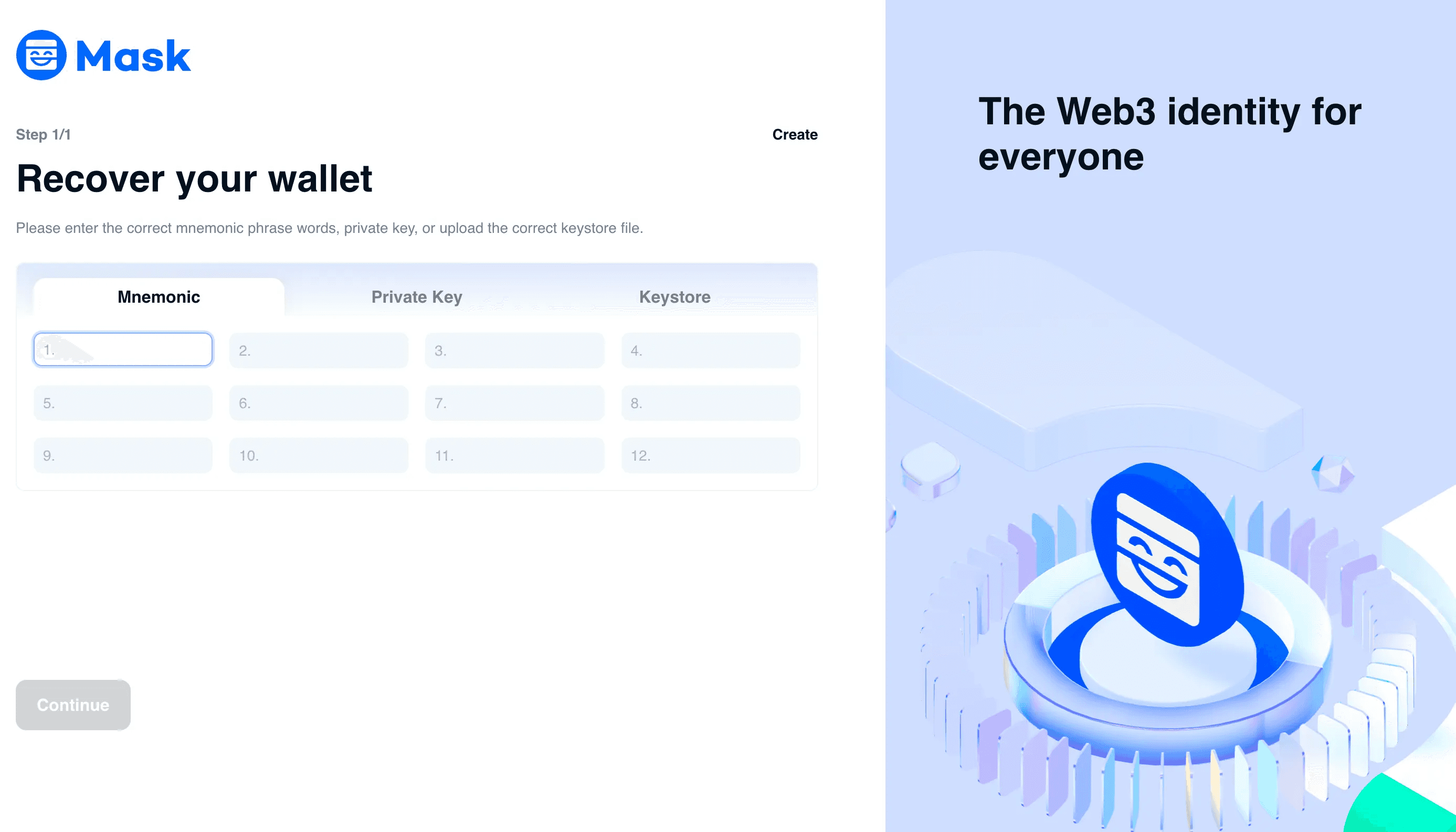 Mnemonic: Enter a 12-word mnemonic phrase