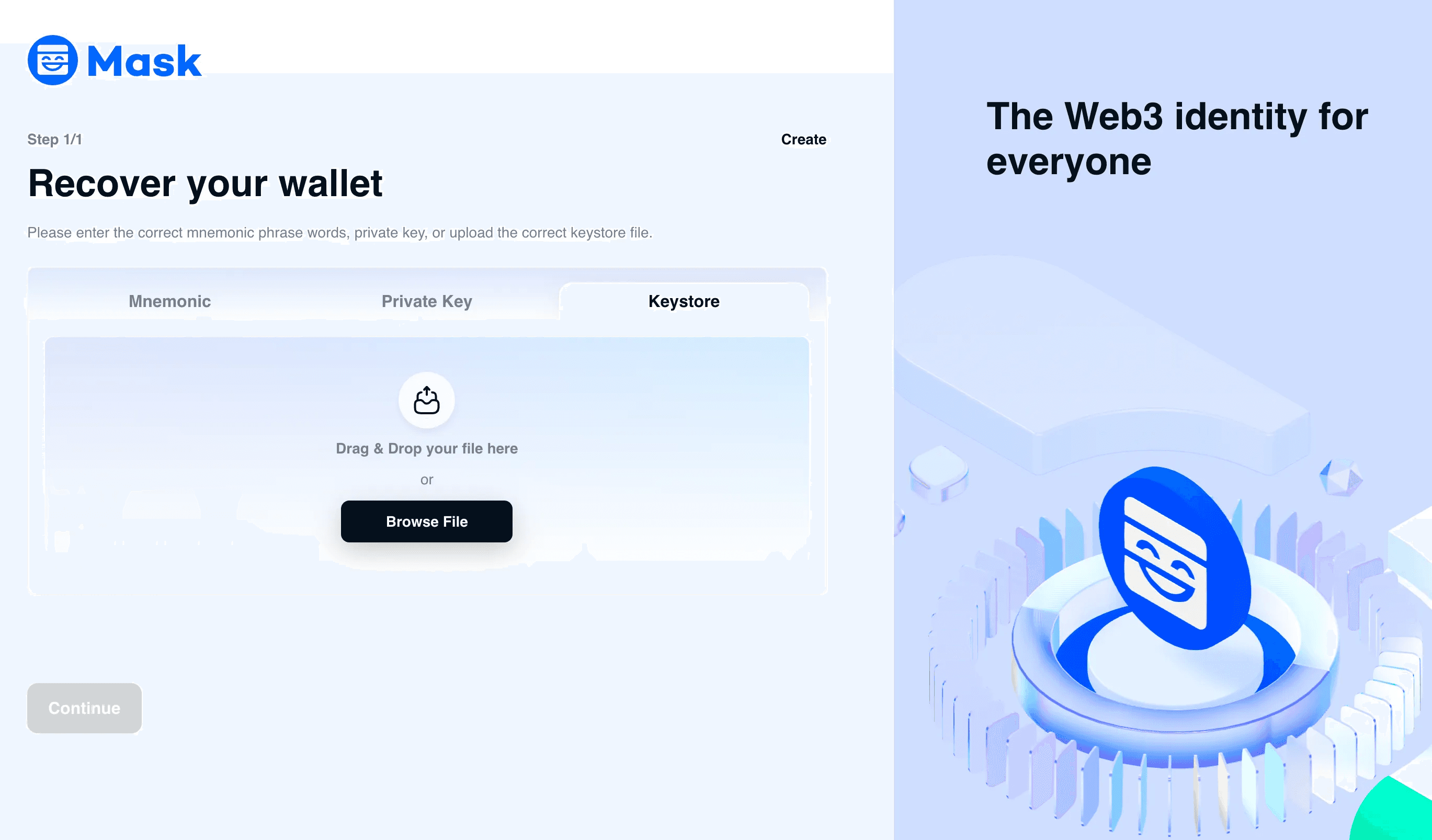 Keystore: Upload the JSON file and the Keystore password