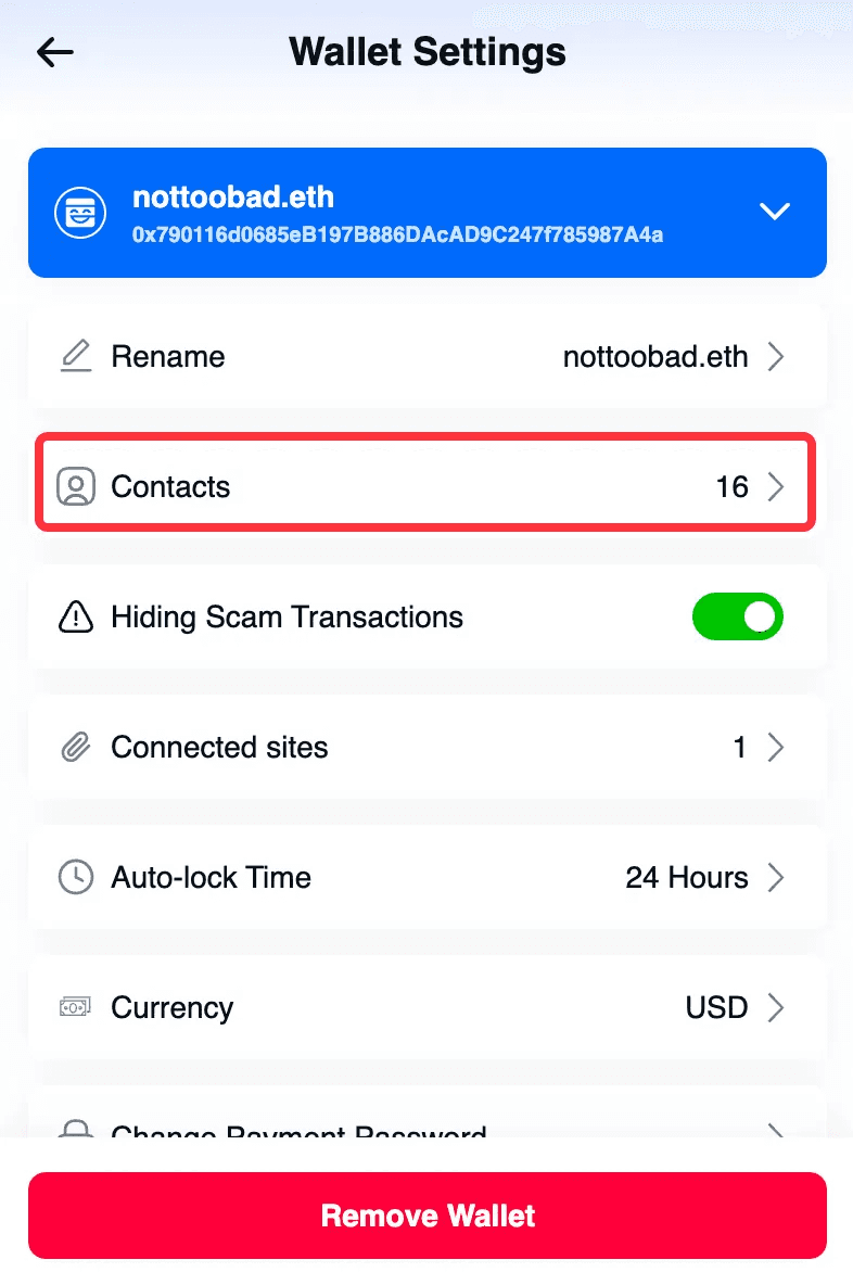 Manage Wallet Contacts
