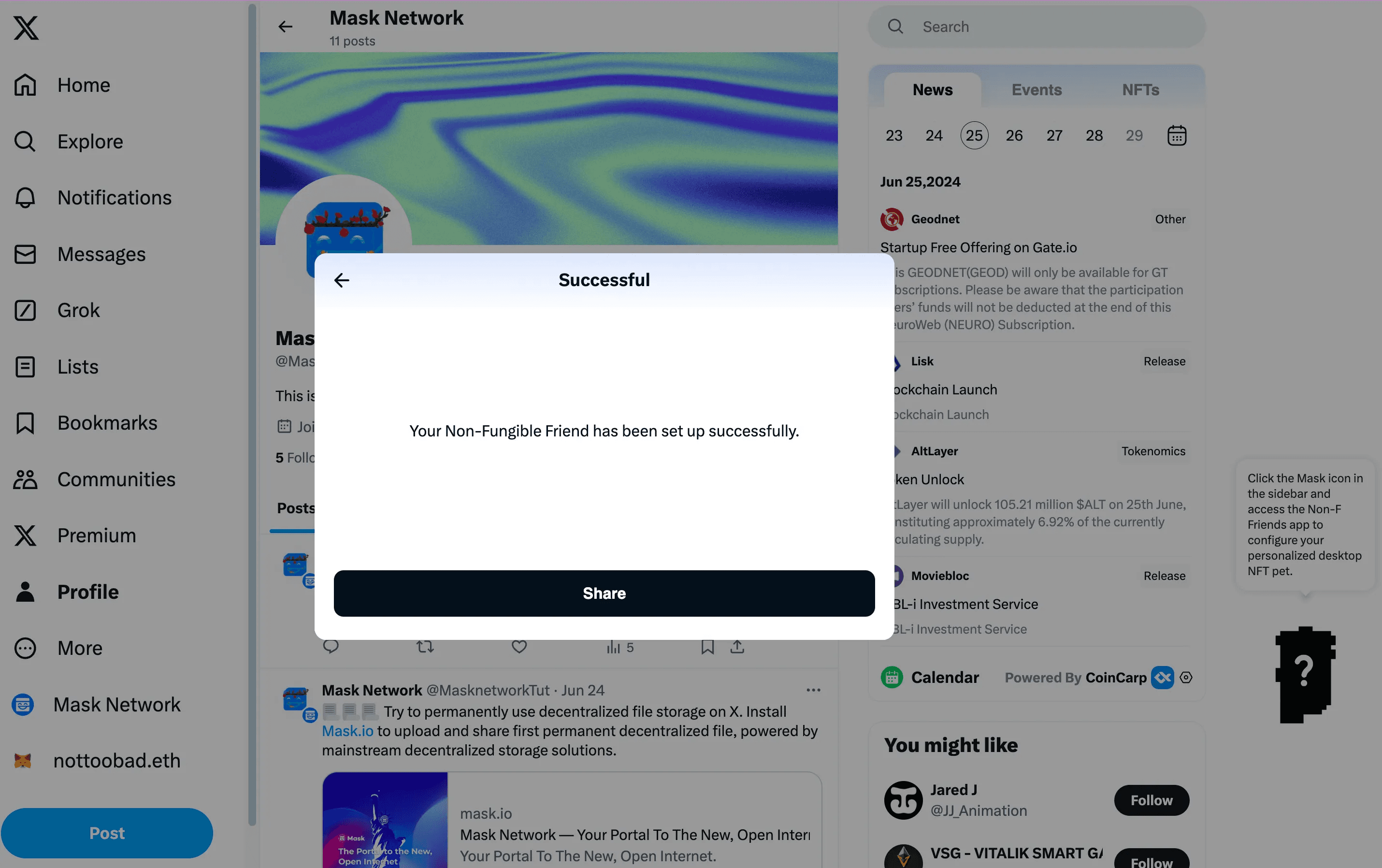 After signing in to your wallet, you have successfully set up your NFT Pet.