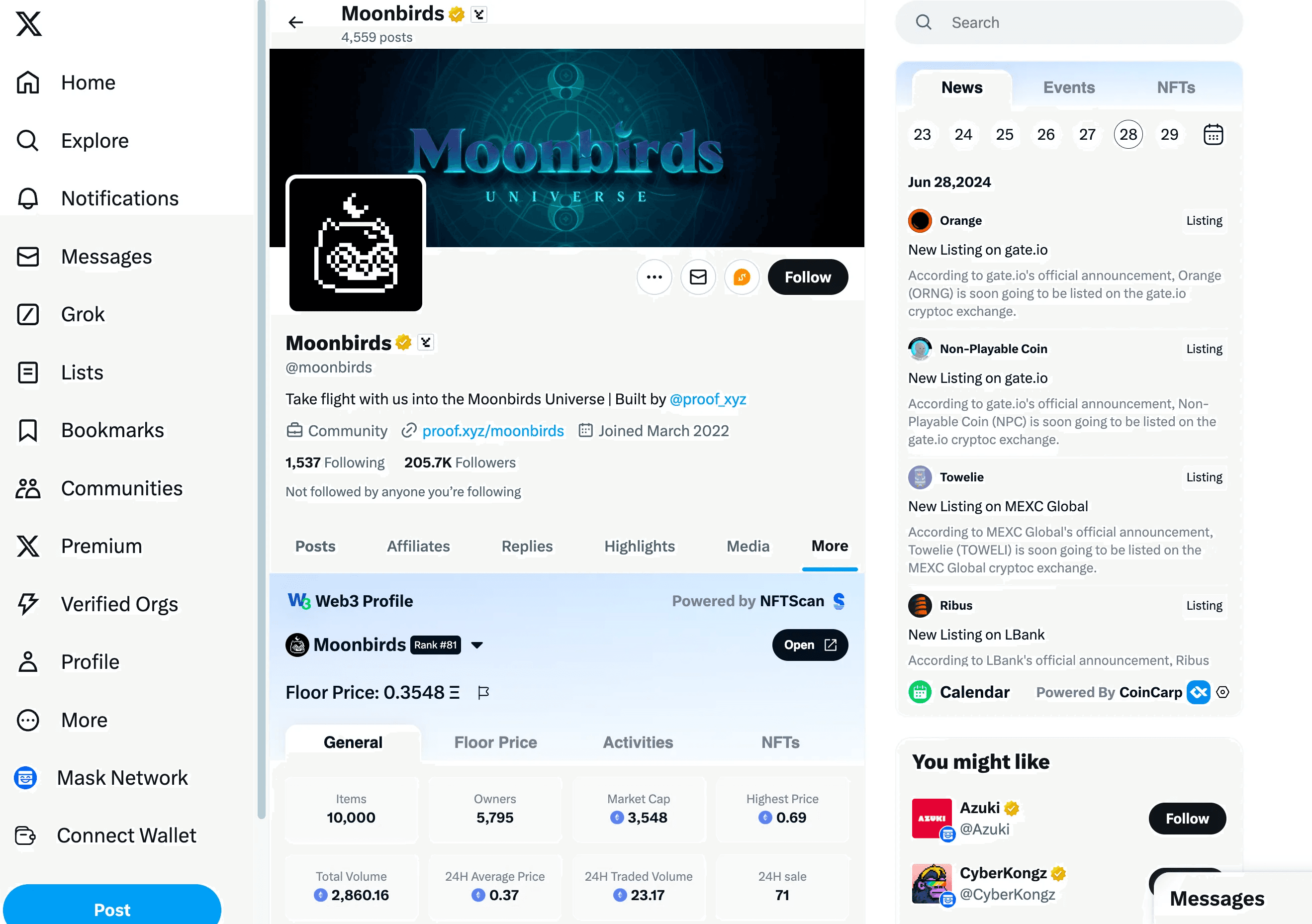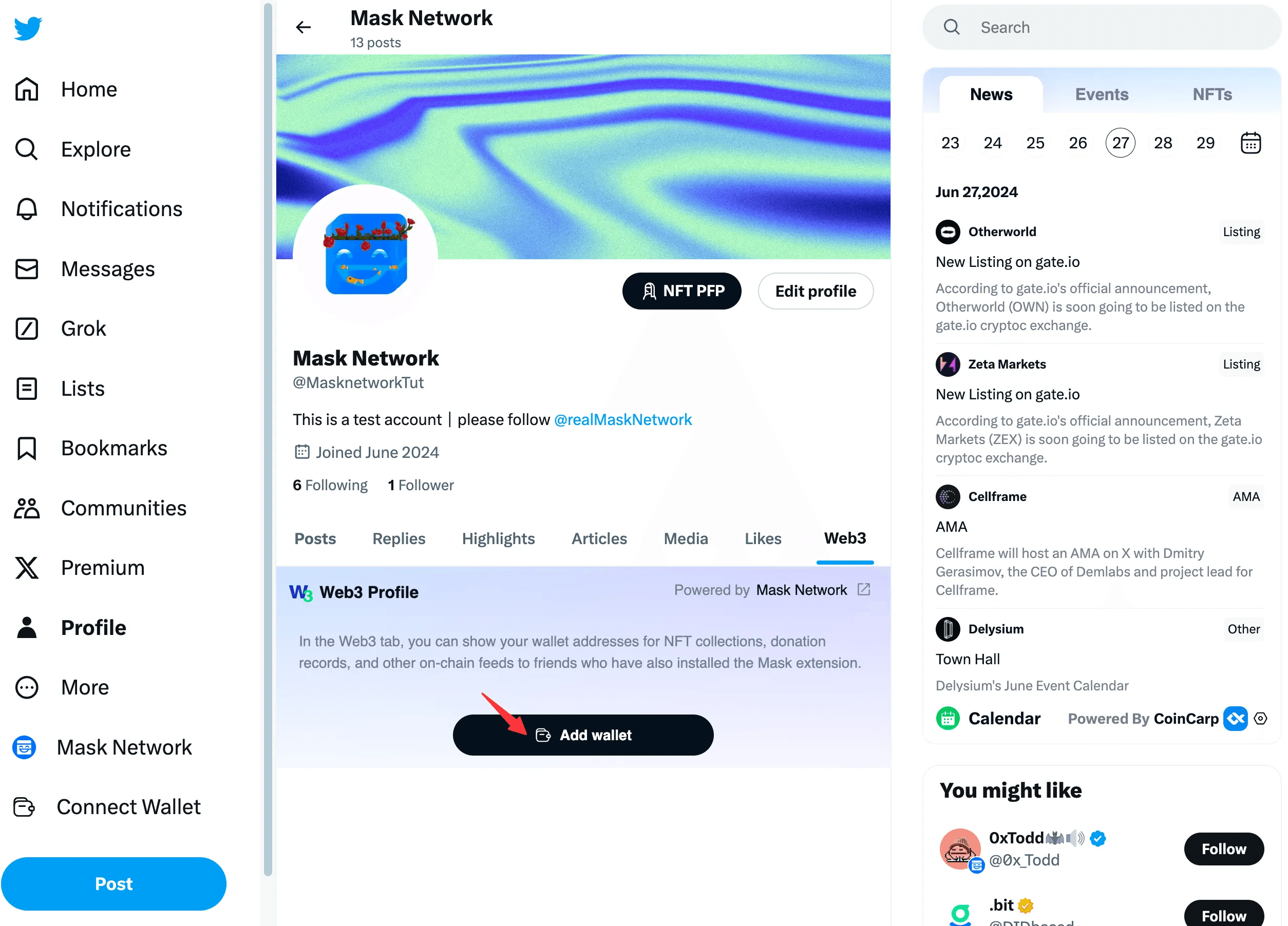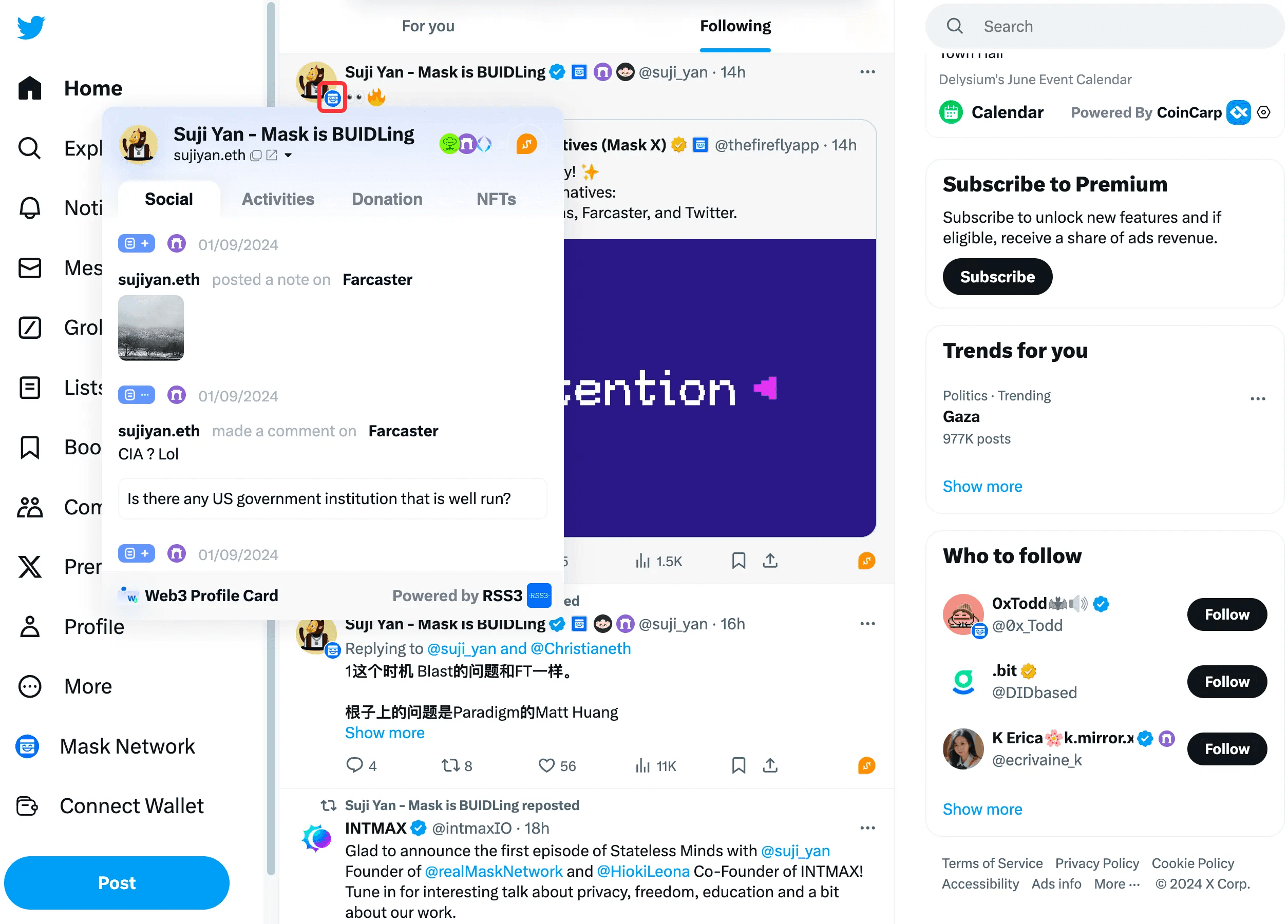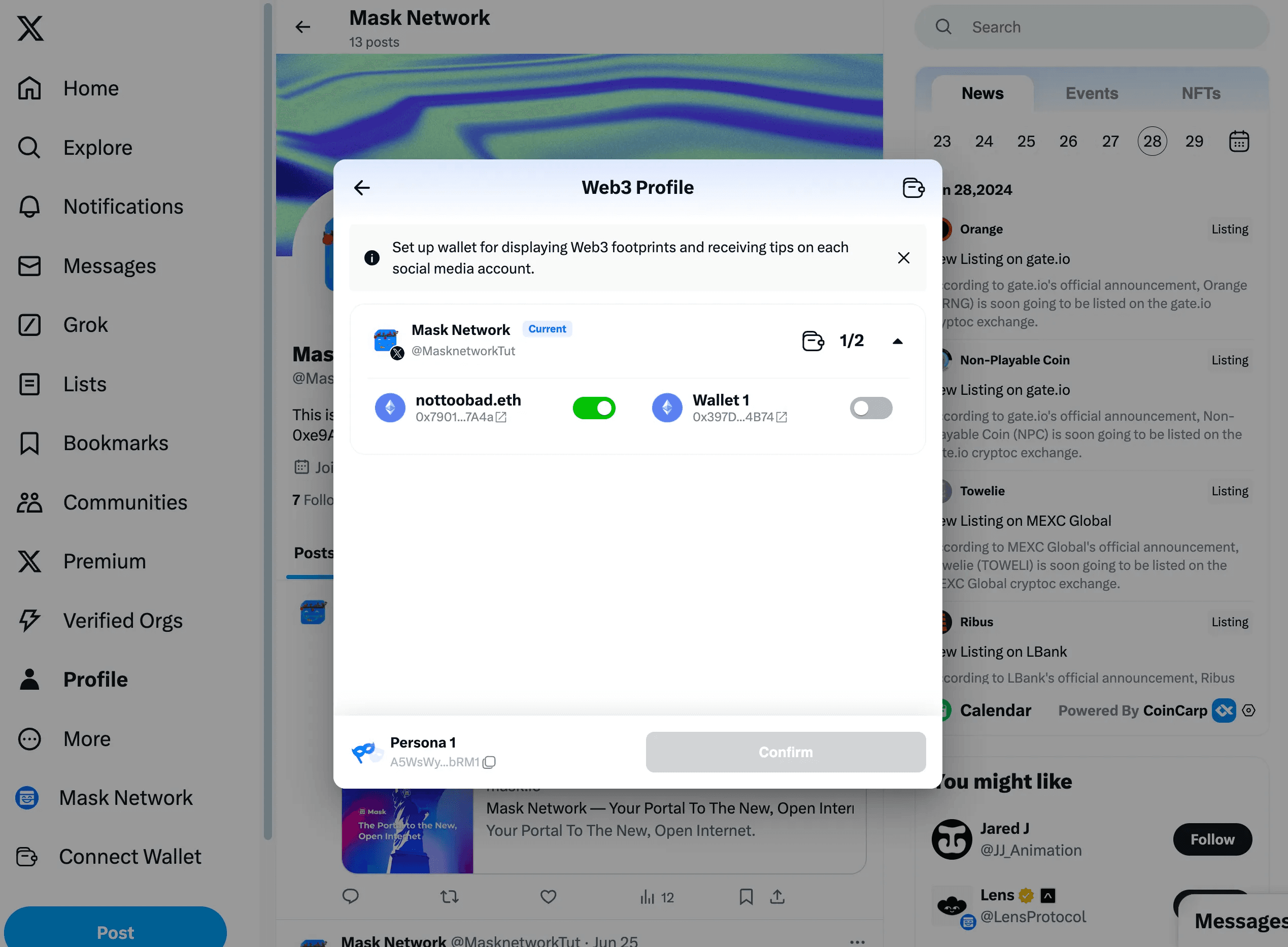 For users with Web3 data, you will see a Mask icon at the bottom right of their avatar. Hovering over this icon will bring up the Web3 Profile.